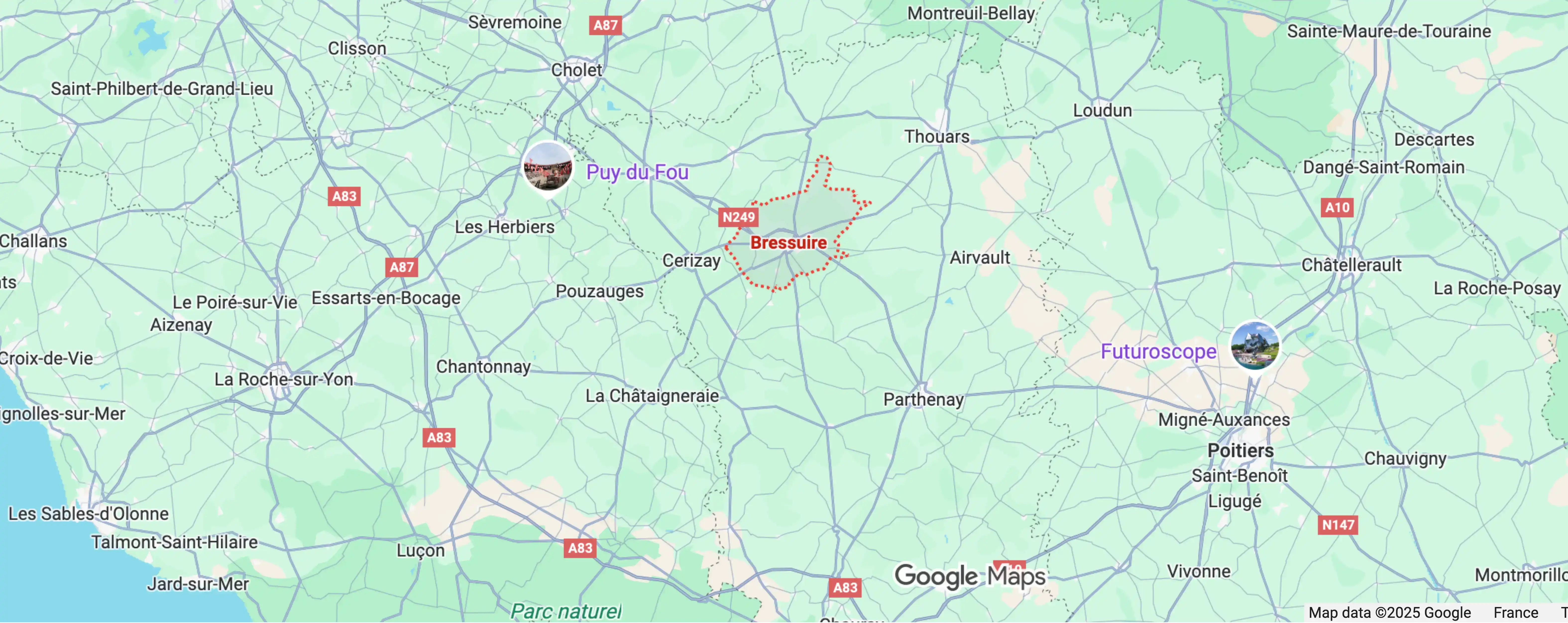 Notre destination ? Bressuire, une petite commune située dans le département des Deux-Sèvres.