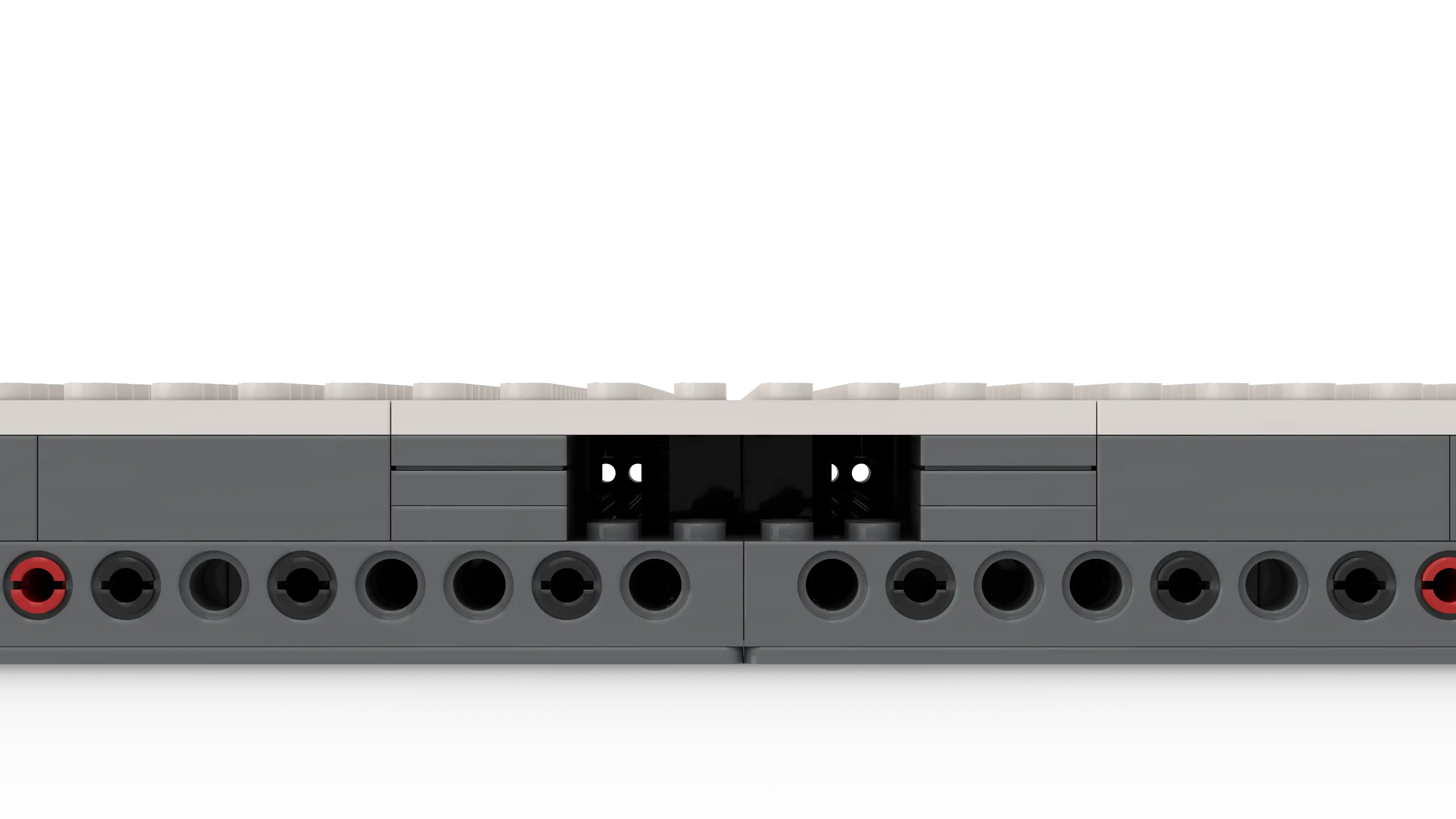 - Toujours du côté des dimensions, les modules ont été surélevés d'une brique de haut afin d'avoir une meilleure gestions des câbles. Ces derniers sont désormais bloqués à l'aide de "Arch 1 x 4" (Réf.
