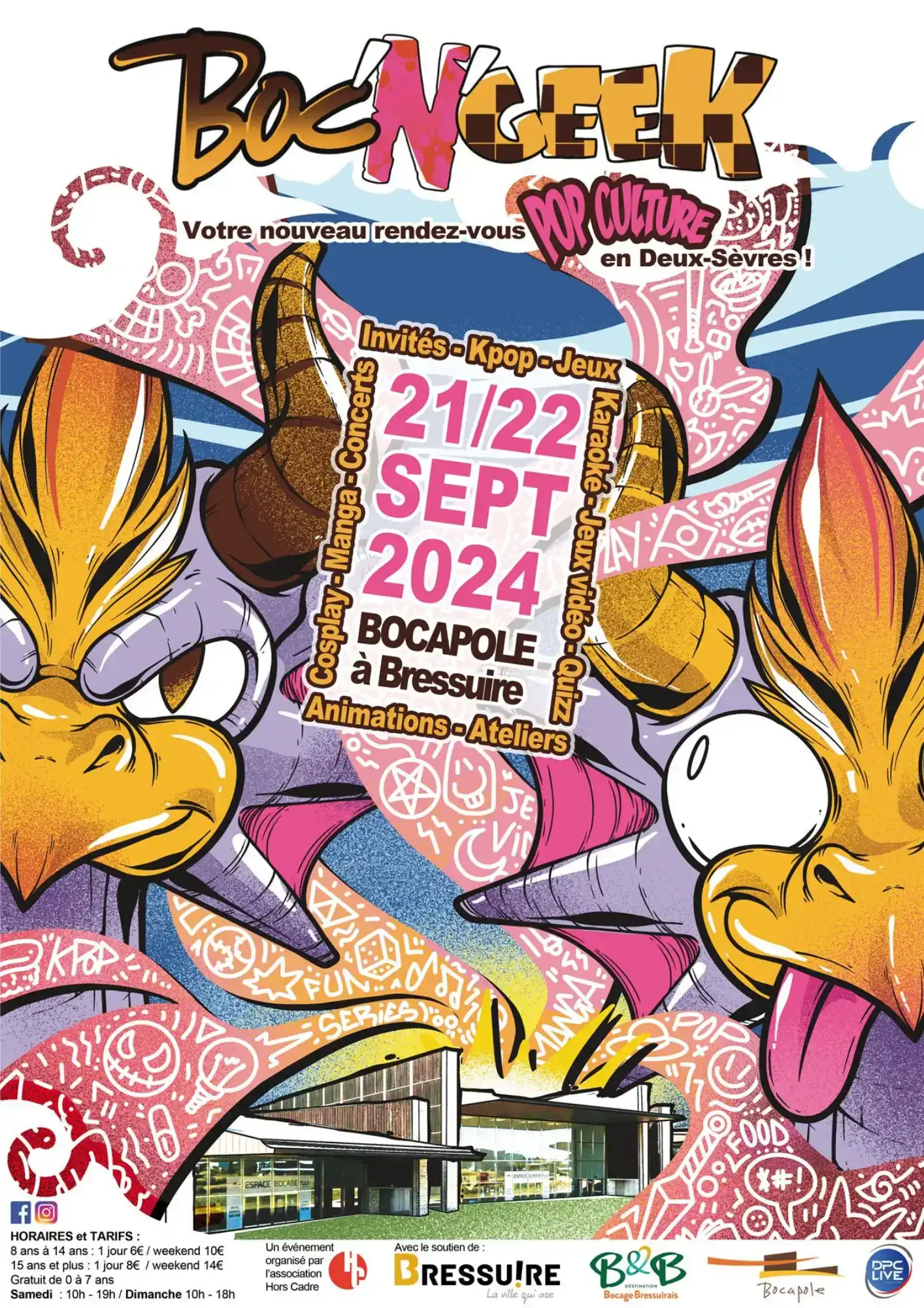 Retour en arrière. Le Boc'N'Geek a été créé par l'association Hors Cadre (Instagram, Facebook, YouTube) en 20102. À l'époque, cet évènement se déroulait à Niort, une autre commune située dans le département des Deux-Sèvres. Son nom était également différent et s'intitulait "Japaniort".