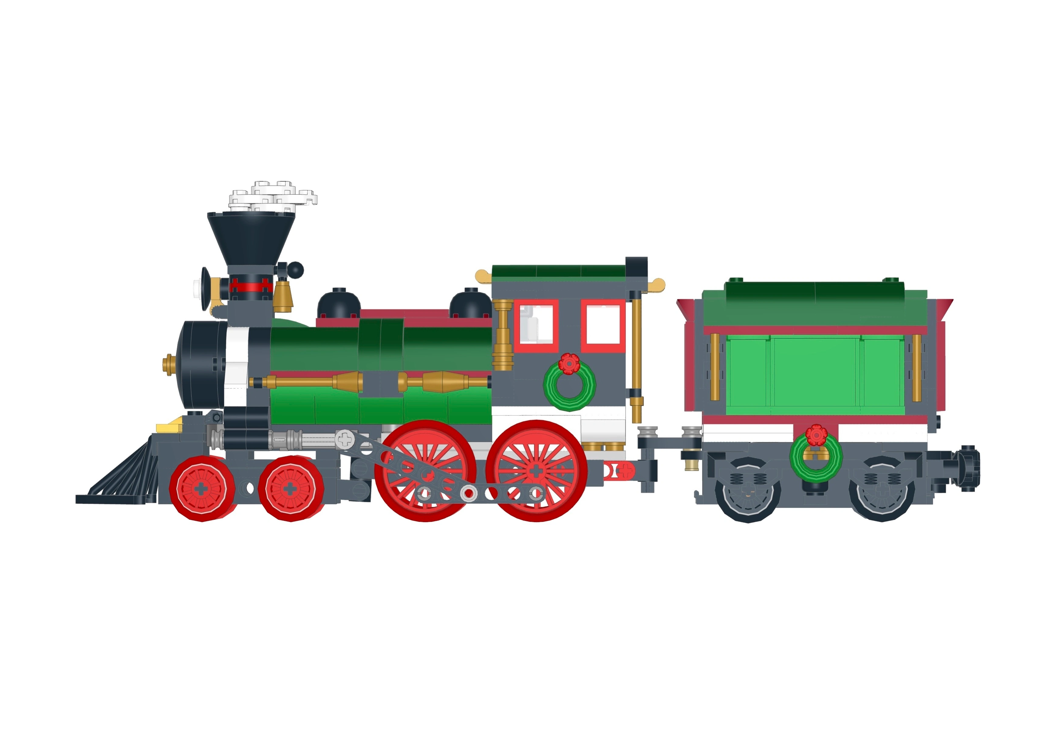 Dès nos débuts avec le Brick Winter Burrow, nous savions que le train serait l'une des animations les plus saisissantes de notre diorama. Nous avons d'abord opté pour le sublime "Winter Holiday Train" (Set 10254) qui possédait une certaine identité visuelle, avant de nous tourner vers les MOCs d'AFOLs talentueux, puis d'essayer d'apporter davantage de détails personnels à notre locomotive et nos wagons.